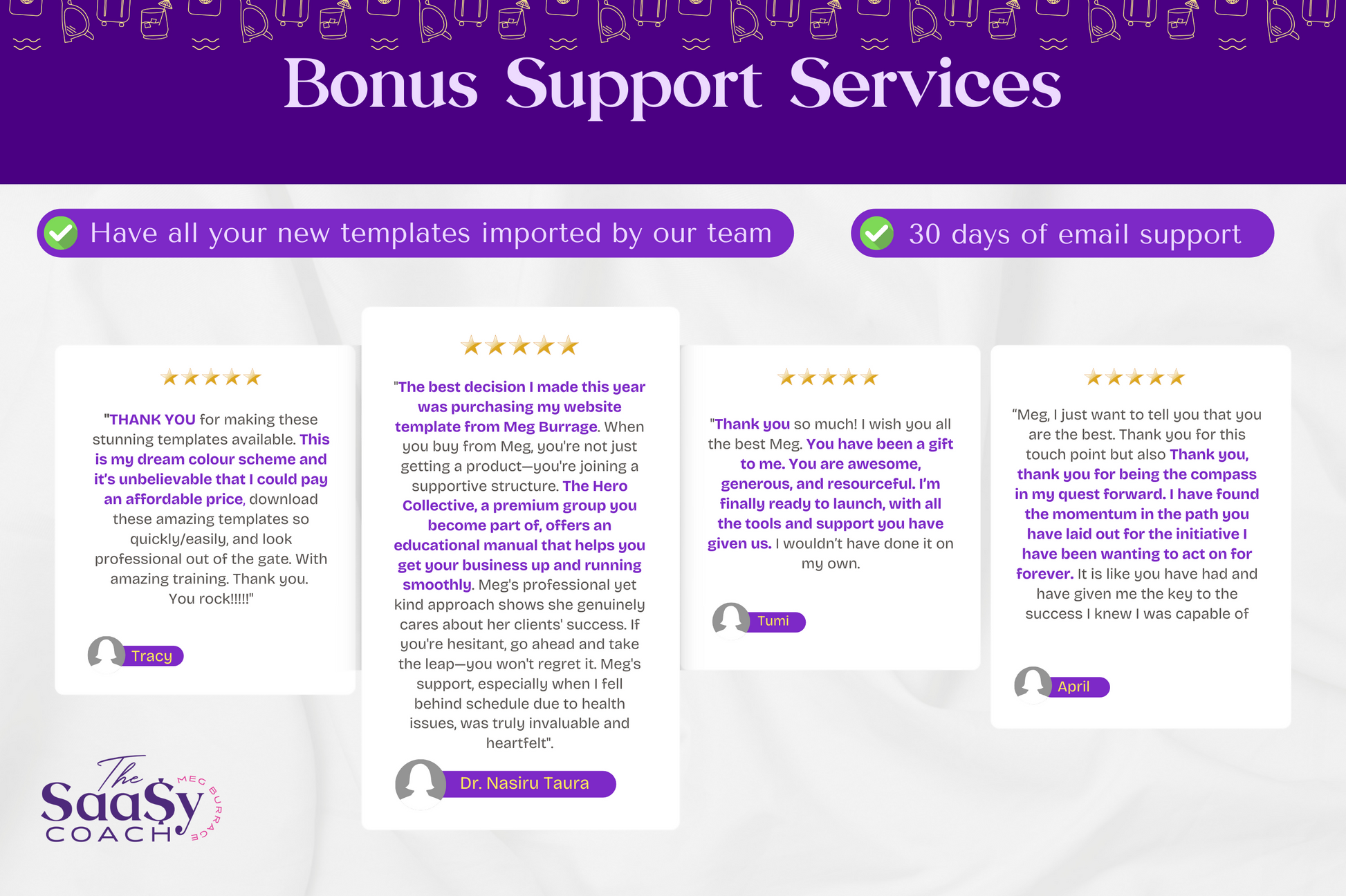 You have 30 days of email support included, and if you’d like us to import your templates for you, we’re more than happy to help!