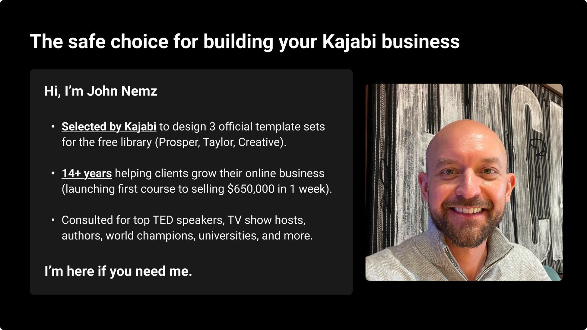 Designed by the creator of Kajabi’s official Prosper, Taylor, and Creative template sets — found in the free library accessible to all users.