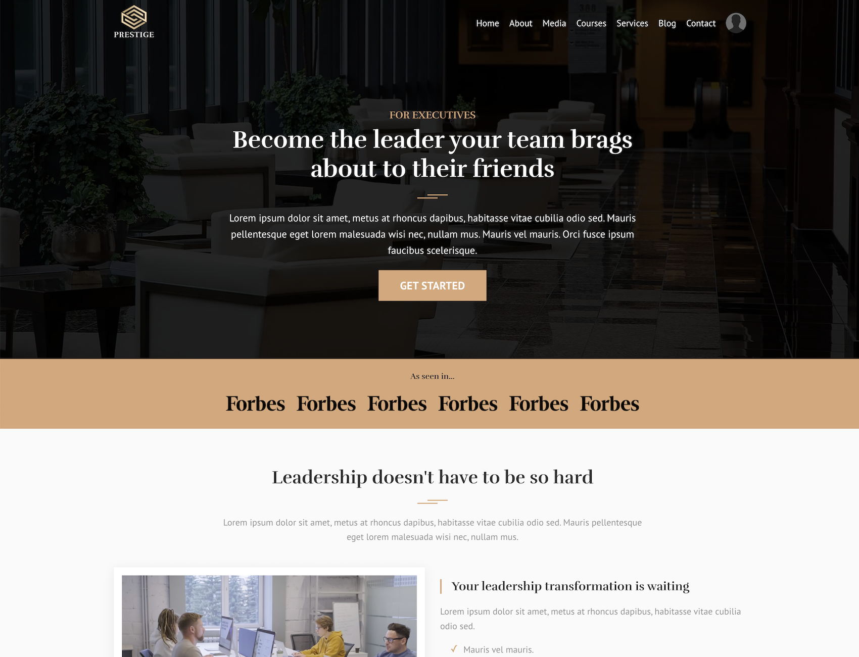 This luxurious website theme is perfect for high-end brands in the business, finance, or executive coaching space.