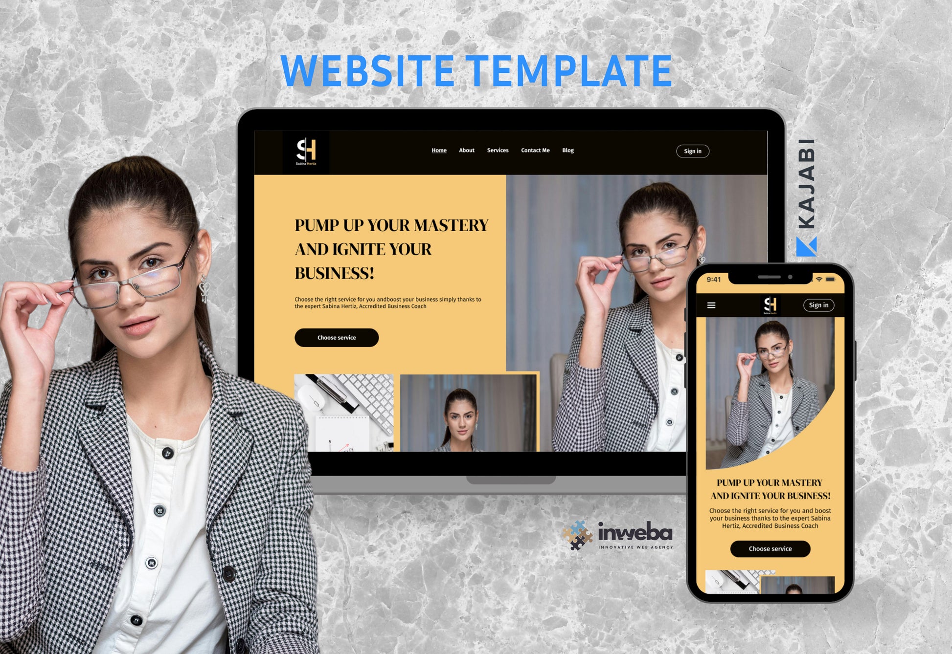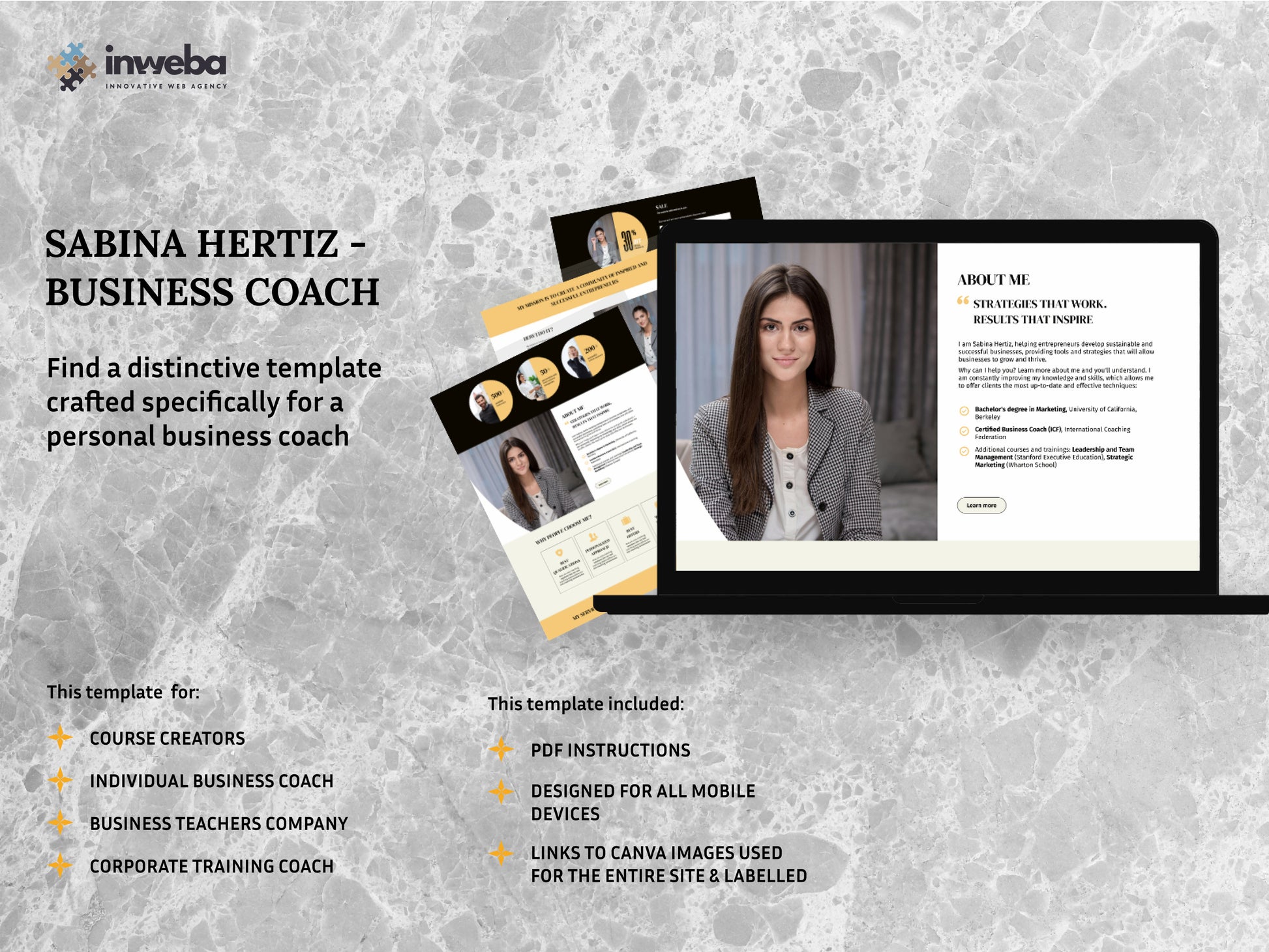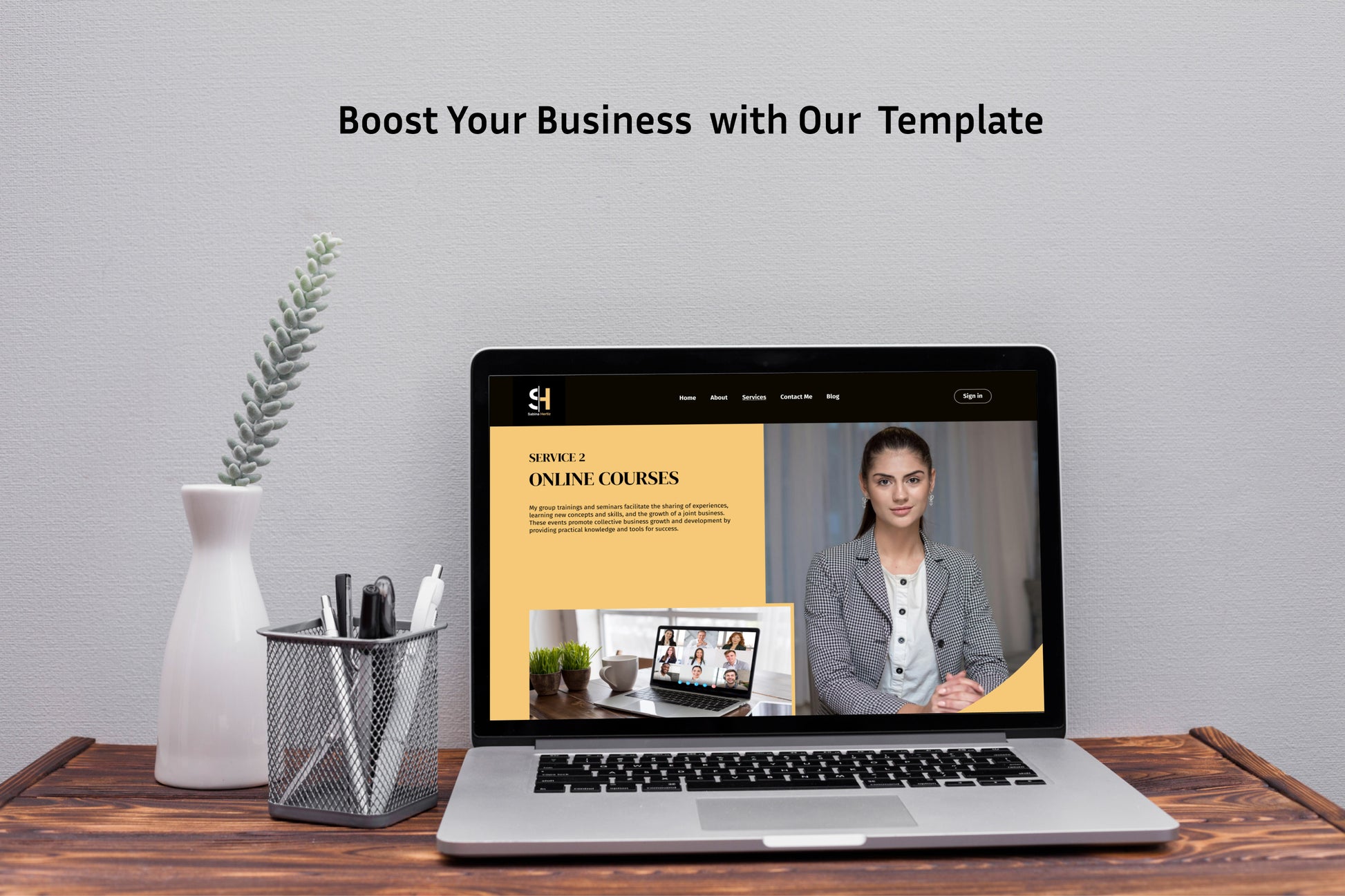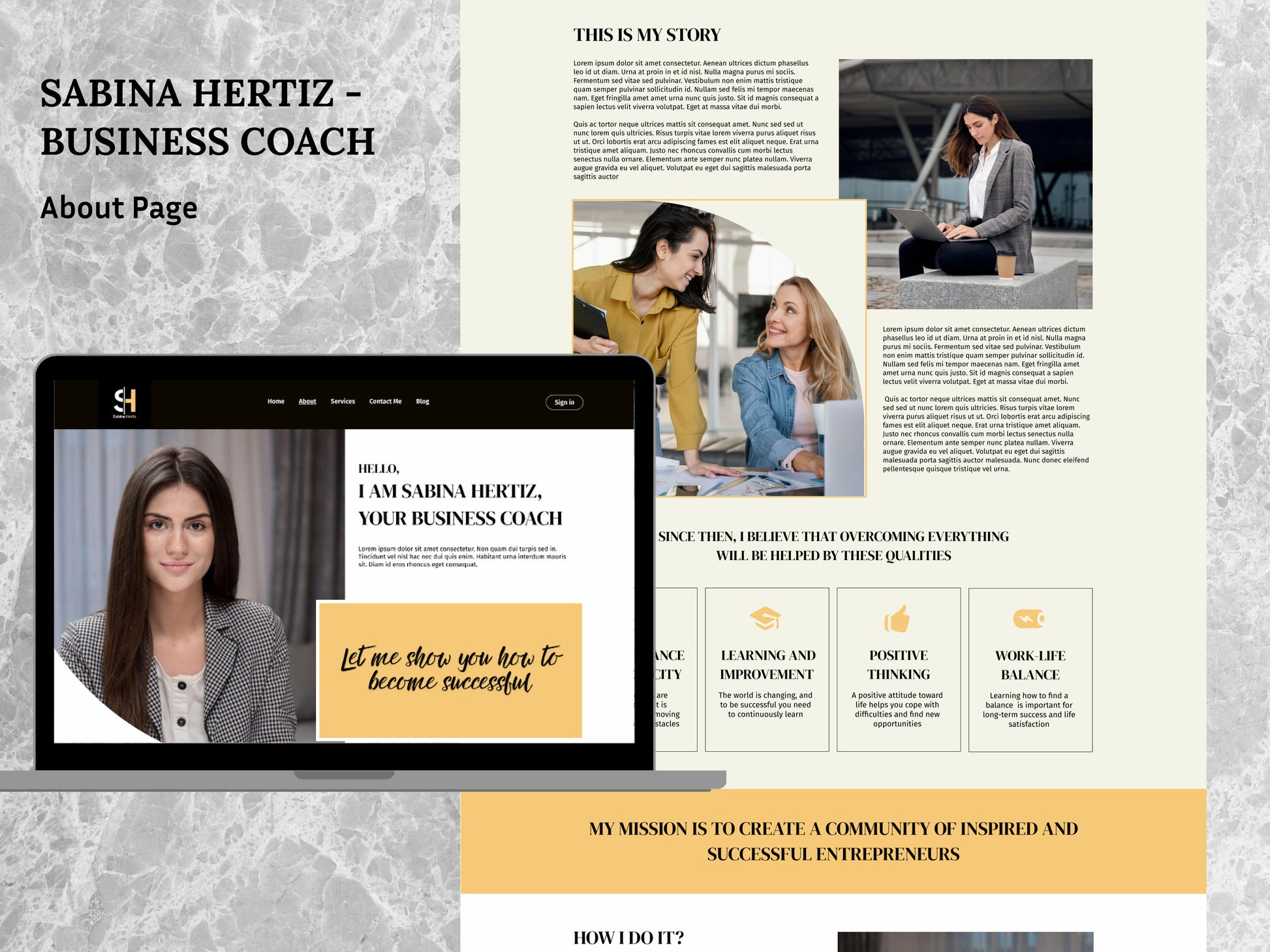 This template is perfect for business coaches who want to stand out. Its dynamic design, with bright yellow accents, creates an atmosphere of energy and optimism.