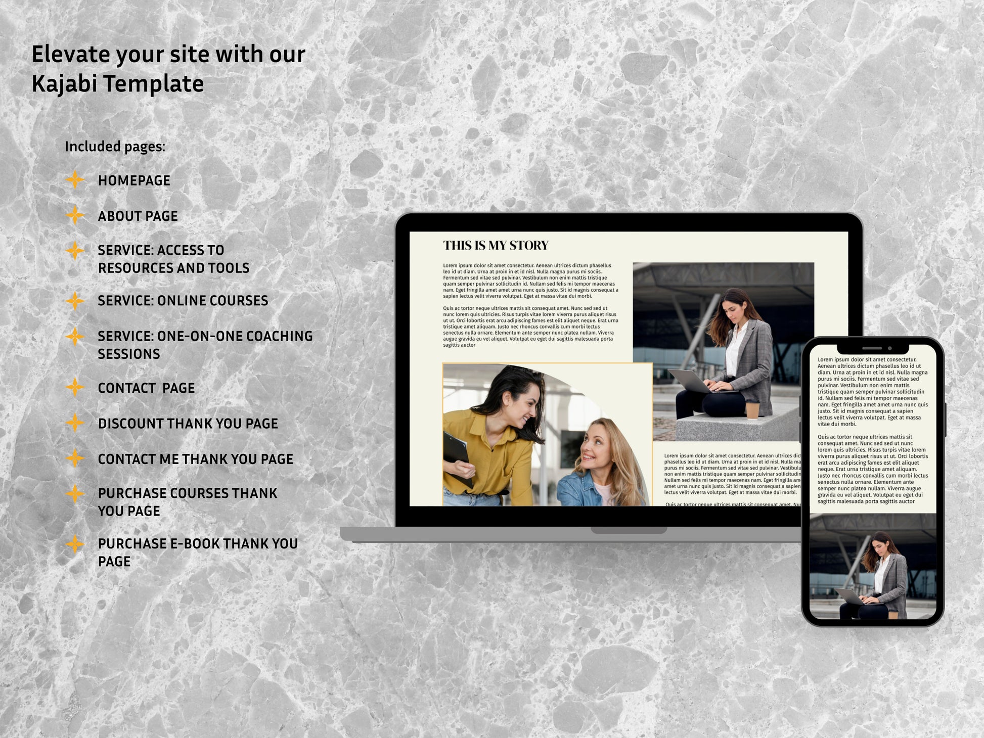 Yes, this template includes both system pages (such as Login, Blog, and Library pages) and landing pages (like the Home page, Course pages, Thank You pages, etc.). Please note that when uploading your Kajabi website, the process differs for system pages and landing pages: