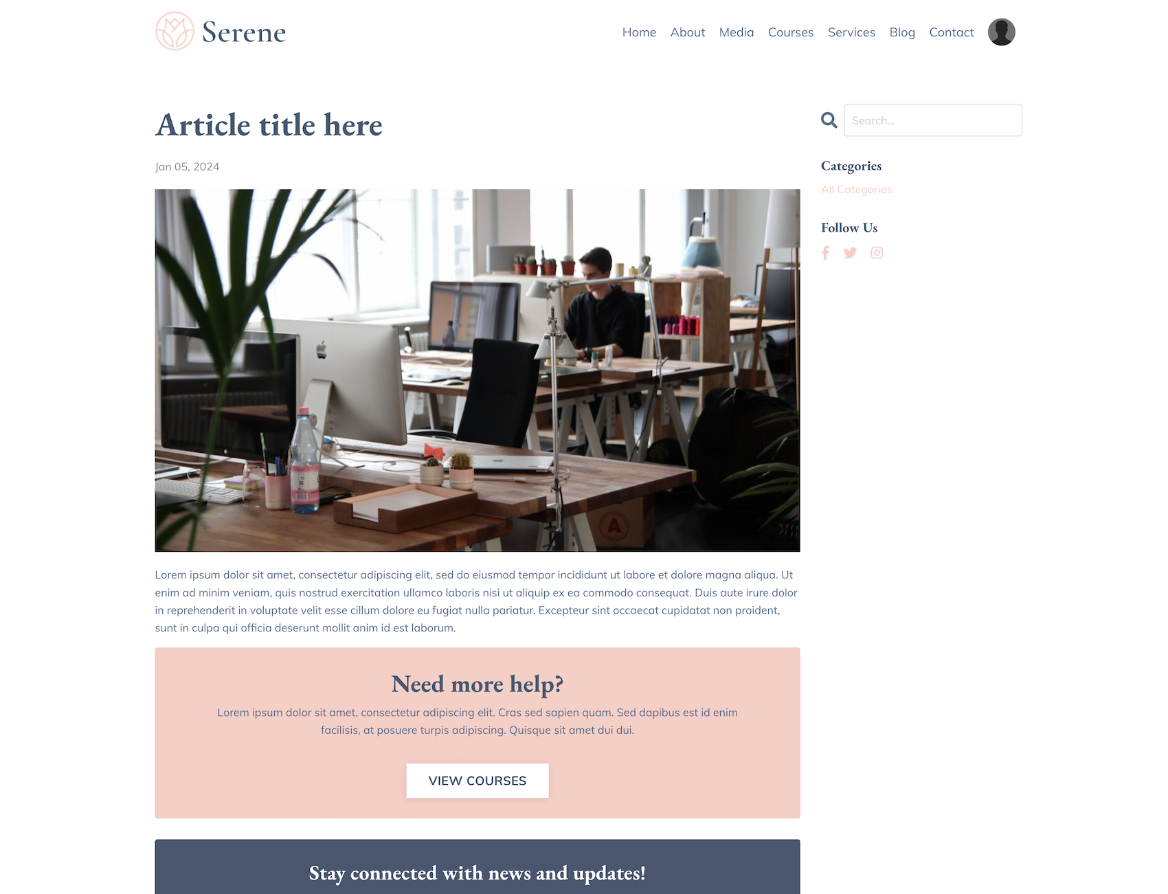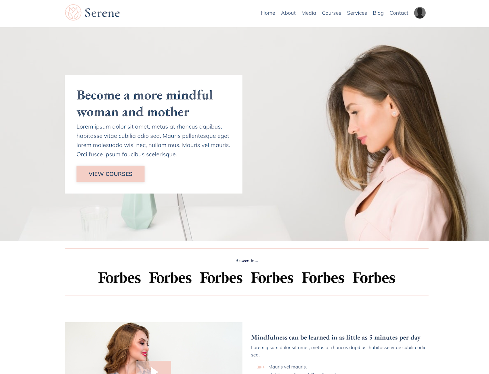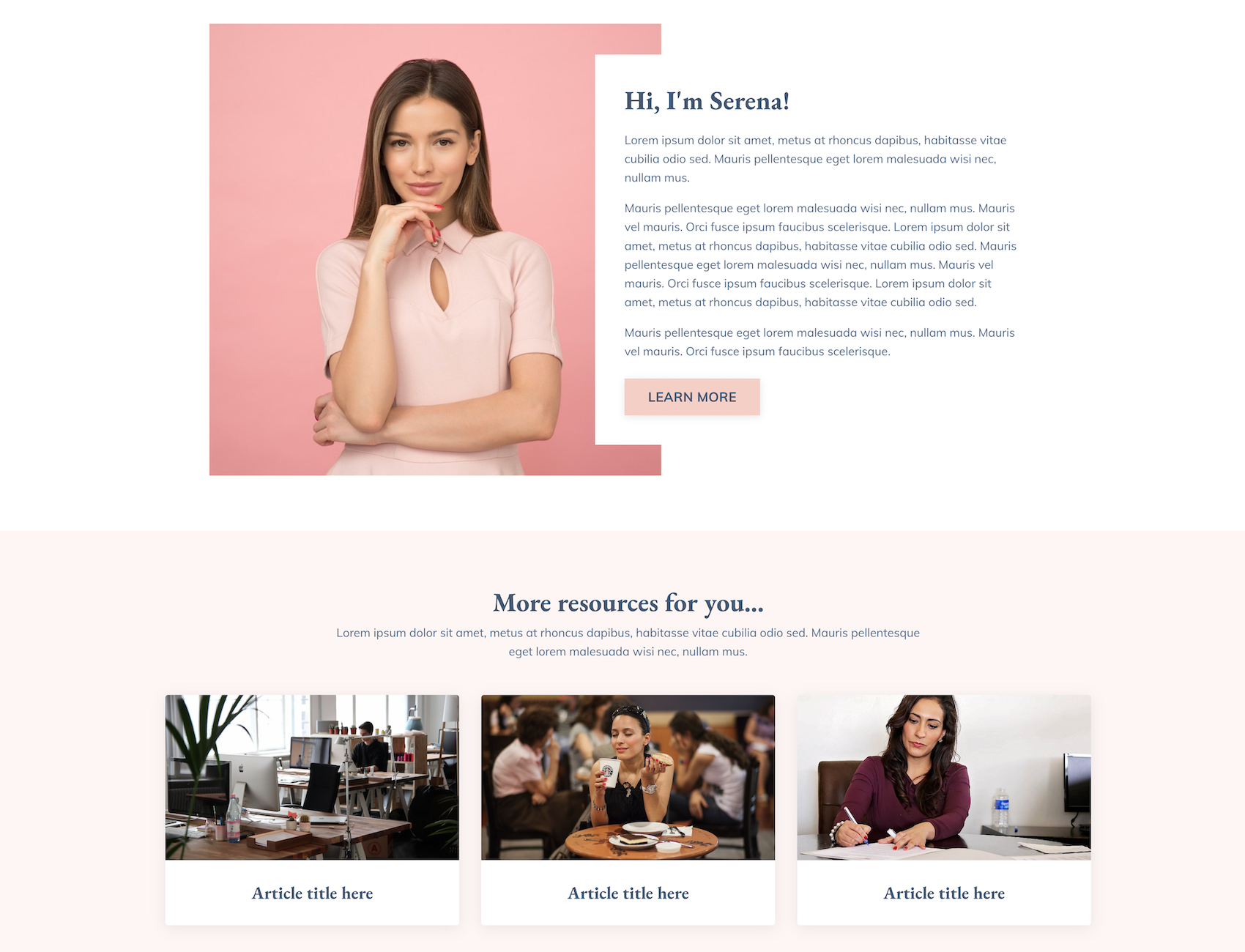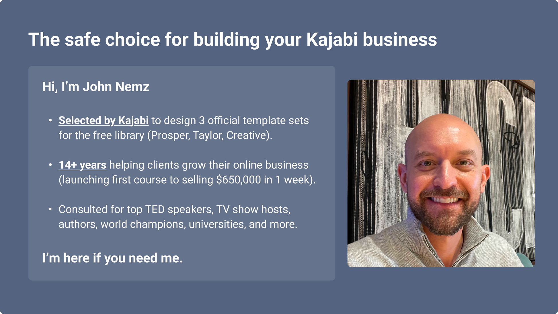 Designed by the creator of Kajabi’s official Prosper, Taylor, and Creative template sets — found in the free library accessible to all users.